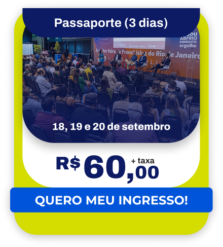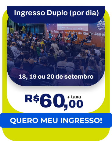 Durante três dias, o Riocentro será o epicentro de grandes negócios. Um ambiente feito para você conhecer as últimas tendências, dialogar diretamente com franqueadores e tomar decisões estratégicas com o suporte de quem realmente entende do setor.